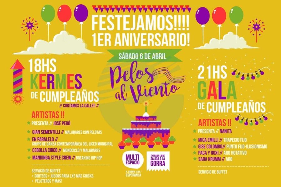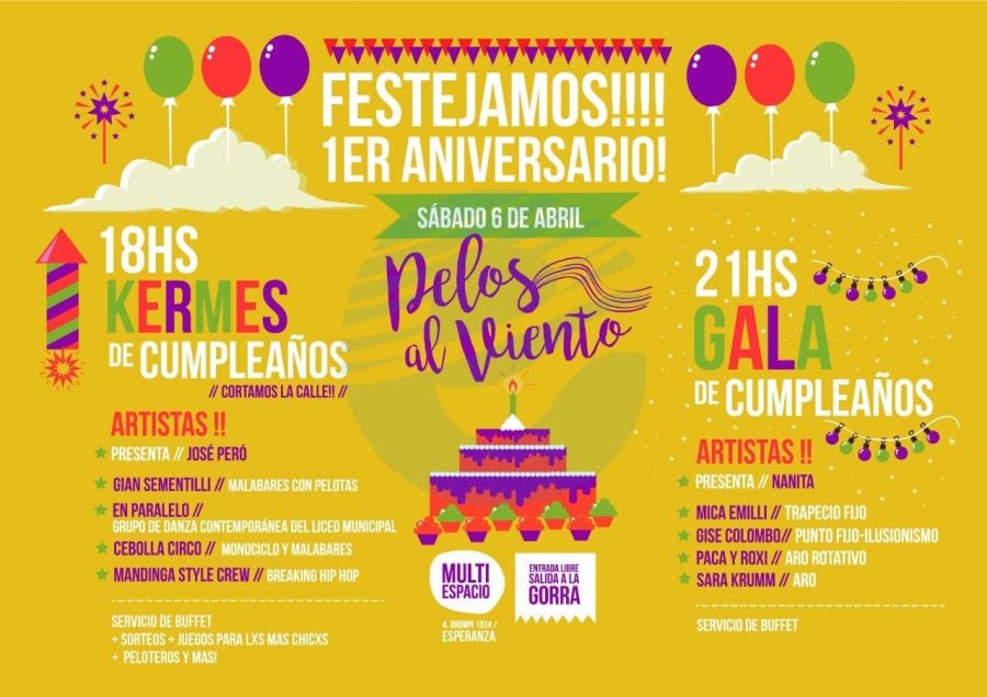 Festejamos nuestro 1er Aniversario a lo grande! por la tarde, cortamos la calle con una kermese de cumpleaños! , super artistas invitadxs, juegos, sorteos, peloteros para lxs más peques, servicio de buffet y mucho más!