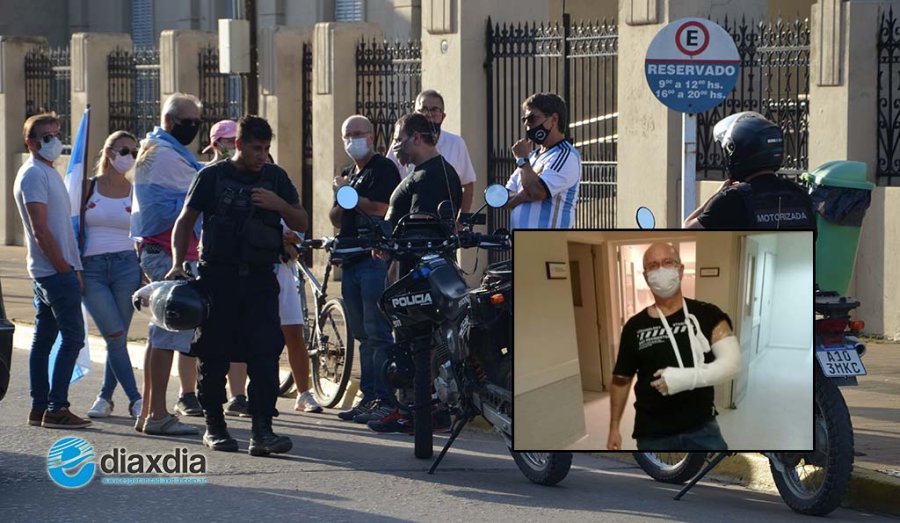 Minutos después del pedido de ayuda al servicio médico llegaron dos agentes de la brigada motorizada y una delegación de agentes municipales de tránsito. Luego lo hizo la ambulancia que trasladó al centro médico al profesional. El ciclista resultó ser el médico Enrique Luder que sufrió una quebradura en su brazo izquierdo, tal como lo muestra la imagen compartida en nuestras redes sociales.
