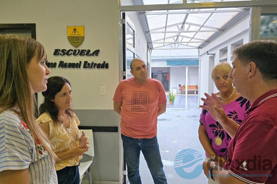 El senador Rubén Pirola, acompañado por Alejandra Van Strate, visitó la Escuela José Manuel Estrada para recorrer las obras en marcha y dialogar sobre las necesidades de infraestructura ante el crecimiento de la matrícula.