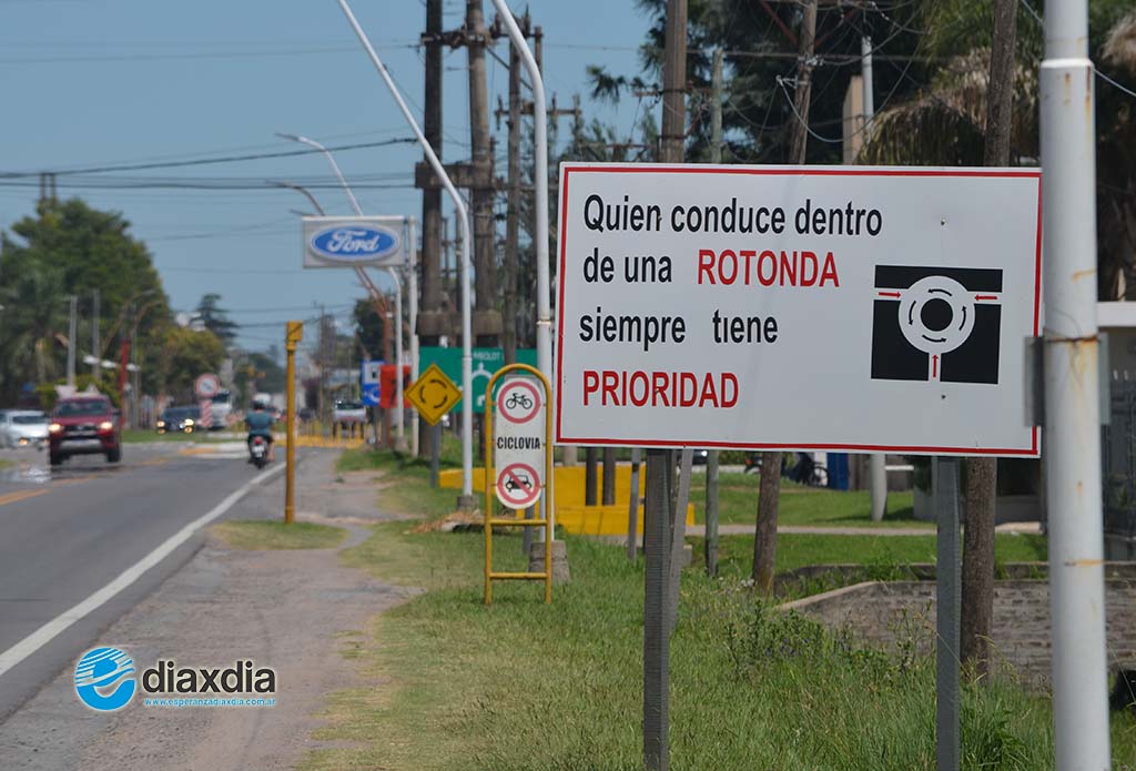 En cada acceso a la rotonda hay un cartel que recuerda las prioridades de paso pero no es respetado. Muchas veces quienes ingresan a la ciudad desde el Arco de la Colonización llegan a la rotonda y entienden que como transitan por la misma ruta tienen la prioridad y no es así.