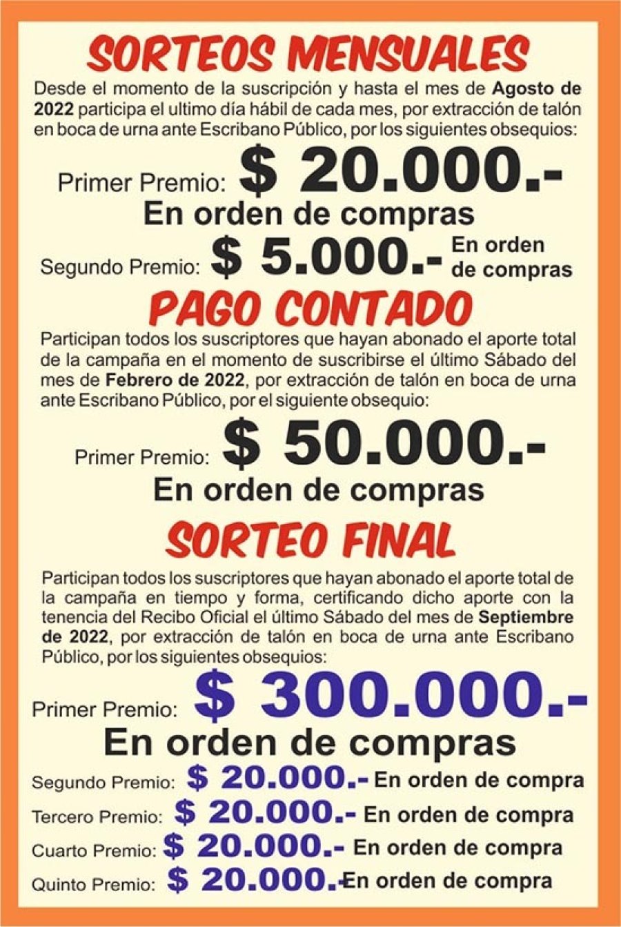 Los premios serán órdenes de compra por 20.000 pesos, 50.000 pesos y 5.000 pesos; y un sorteo final de 300.000 pesos.