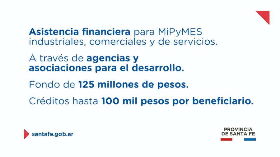 El gobierno de la provincia de Santa Fe, a través de los Ministerios de Producción, Ciencia y Tecnología, y de Gestión Pública, ofrece esta herramienta financiera de ayuda que se canaliza mediante las Agencias para el Desarrollo y Asociaciones para el Desarrollo de todo el territorio provincial.