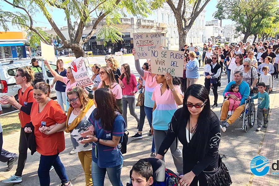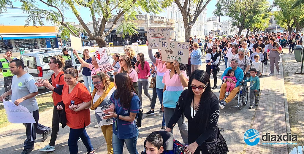 Los padres y las personas con discapacidad acompañaron el reclamo y con palmas no sólo participaron de la explicación que los profesionales realizaron en la plaza baja, sino que también marcharon alrededor del paseo central de la ciudad.
