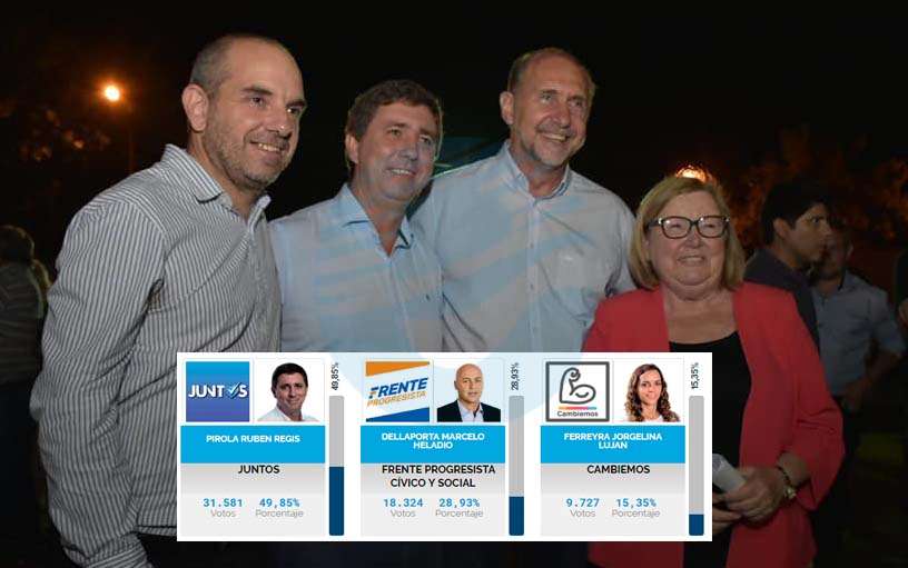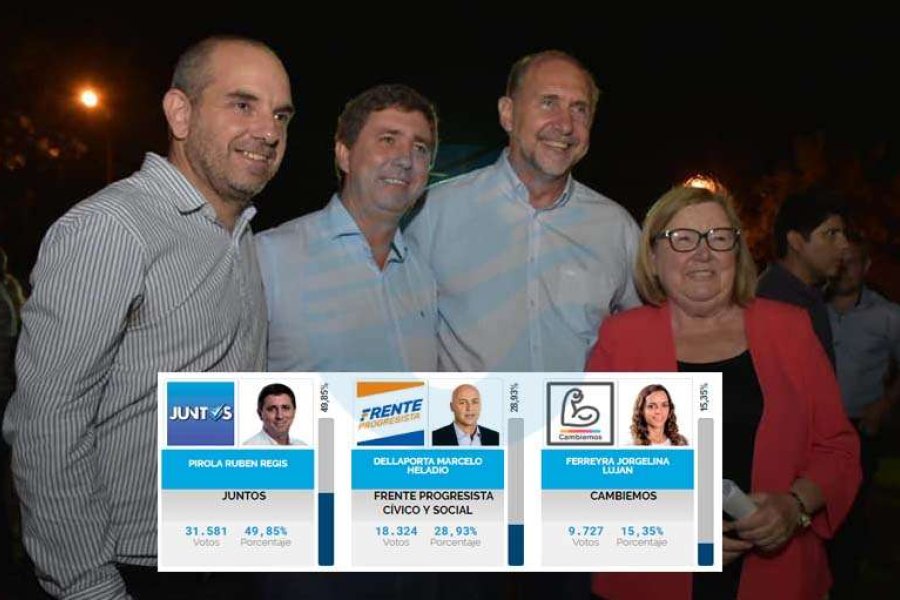 Como muestra la infografía Rubén Pirola obtuvo 31.581 votos, es decir el 50% de los votos, Marcelo Dellaporta 18.324 sufragios, el 29% del total y Jorgelina Ferreyra recibió 9.727 apoyos, es decir el 15%.