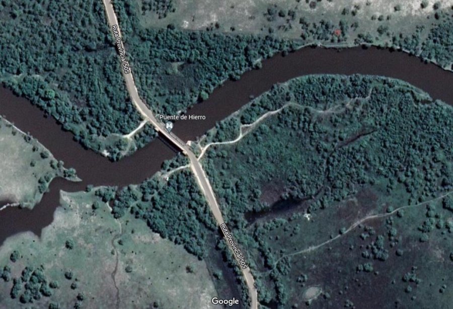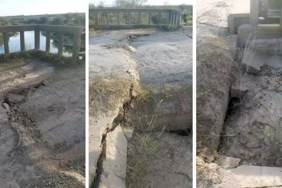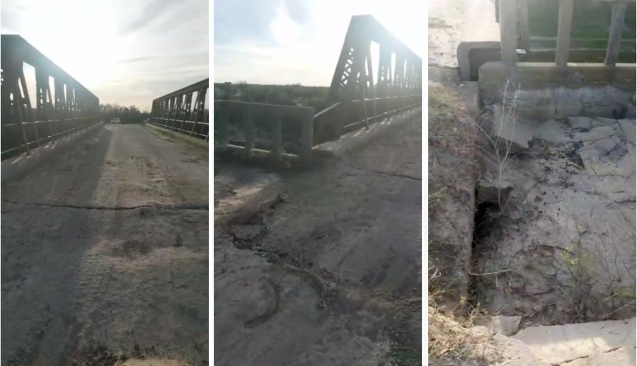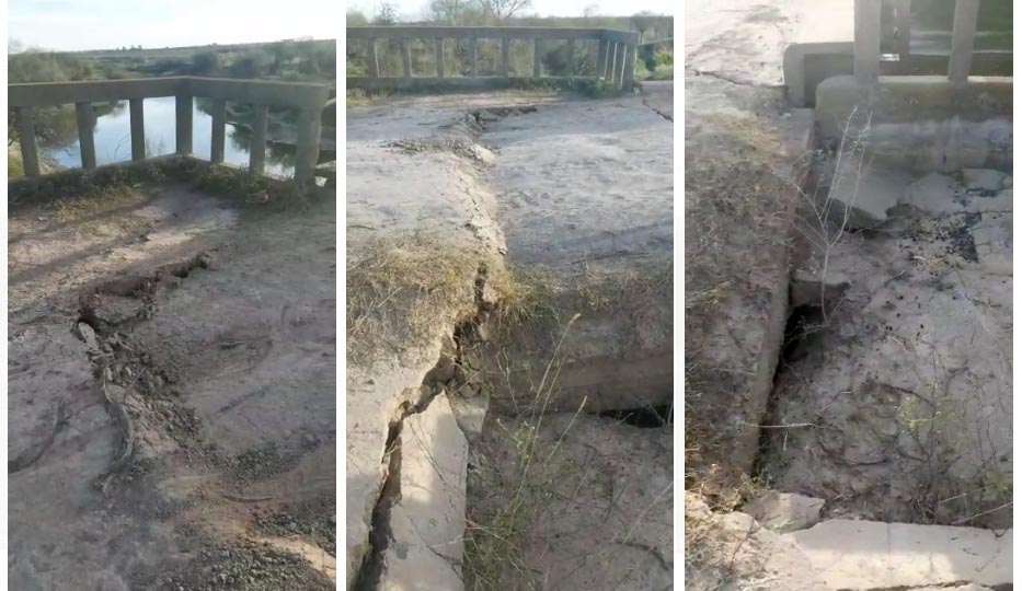 Al promediar la tarde de este viernes se produjo el hundimiento de la estructura de cemento que enlaza el camino rural que conforma la ruta provincial 50 S con la estructura principal del puente de hierro en el extremo noroeste del distrito Esperanza.
