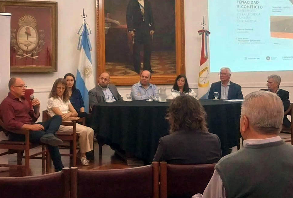 En la tarde del jueves, la docente e investigadora de la Facultad de Ciencias Agrarias, Patricia Sandoval, presentó junto a su equipo de trabajo en el Salón Blanco municipal el libro “Tenacidad y conflicto: semblantes de la lechería familiar santafesina”.