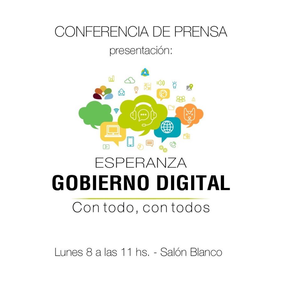 El próximo lunes 8 de marzo, en el Salón Blanco Municipal, se realizará el lanzamiento oficial de “Esperanza Gobierno Digital” con una conferencia de prensa convocada para las 11.