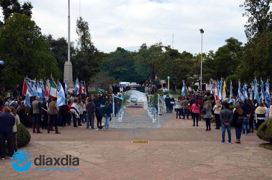 El padre Ernesto Agüera brindó su oración por la patria y la intendenta municipal fue la única oradora política. Leyó un discurso no propio donde hizo referencias a la revolución de mayo y trazó paralelismos con la libertad, el trabajo y la voluntad de la gente de seguir por la senda que marca su gestión.