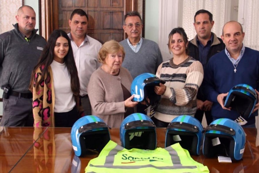 El acto de entrega de cascos y chalecos de seguridad que entregó la Agencia de Seguridad Vial a la Municipalidad de Esperanza se realizó en el despacho de la intendenta Ana Meiners quien fue acompañada por el Secretario de Servicios Públicos Martín Franconi y otros integrantes de su gabinete.