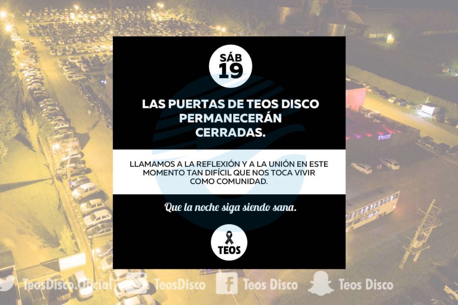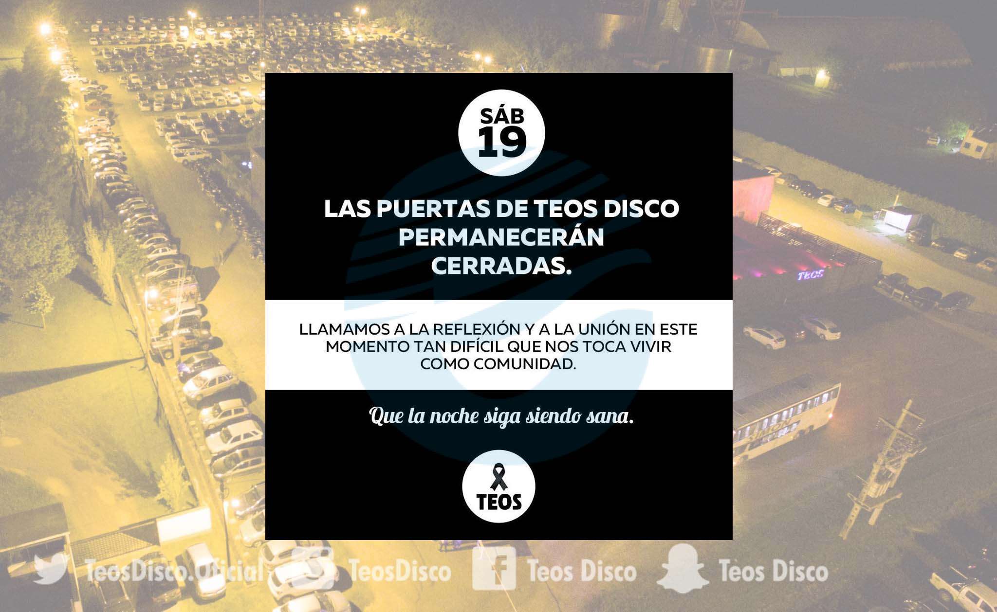 Teos Disco informó que este sábado sus puertas estarán cerradas al público.