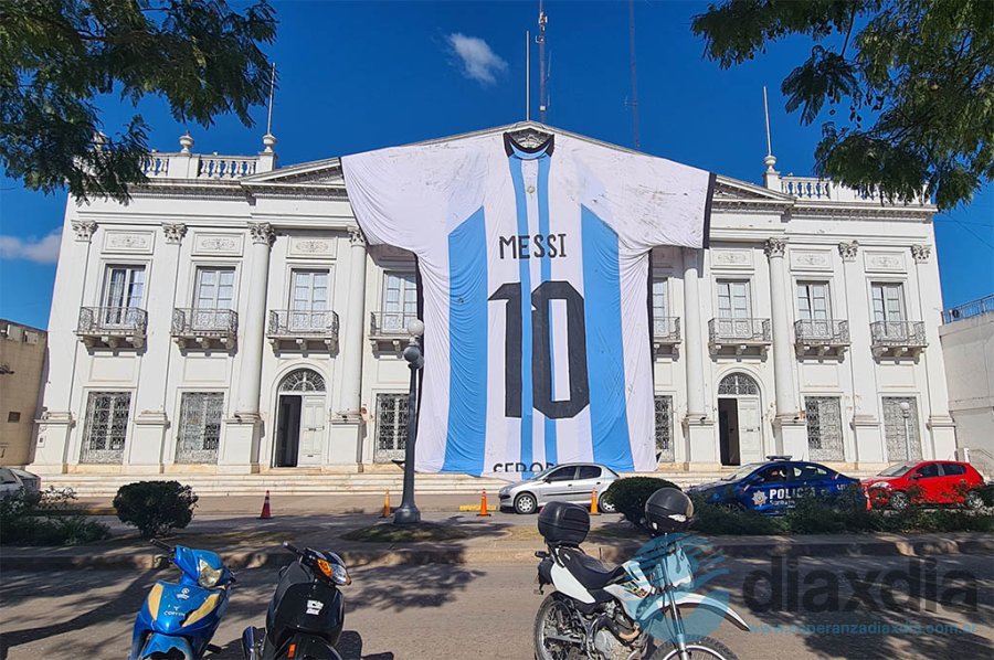 Este martes por la mañana la Municipalidad de Esperanza se sumó a la movida de identificarse con la causa deportiva nacional y desplegó sobre su fachada la camiseta gigante de Leo Messi que invita a todos a celebrar el triunfo.
