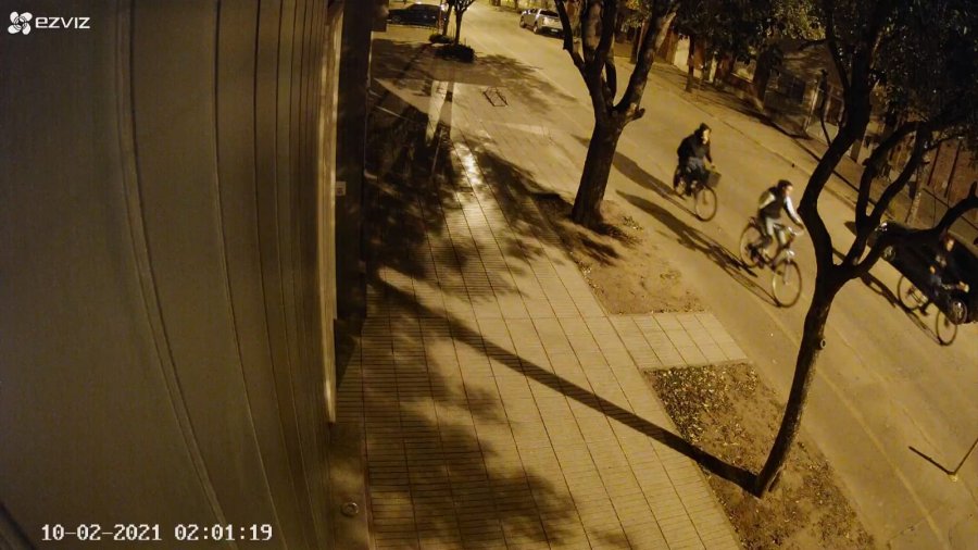 El hecho se produjo en Almirante Brown al 1.600 de Esperanza y el video registra el momento en el cual cuatro jóvenes que se trasladaban en tres bicicletas pasan por la zona en contramano y regresan velozmente ya en sentido de circulación, para romper de una patada el espejo retrovisor de un automóvil que estaba estacionado.