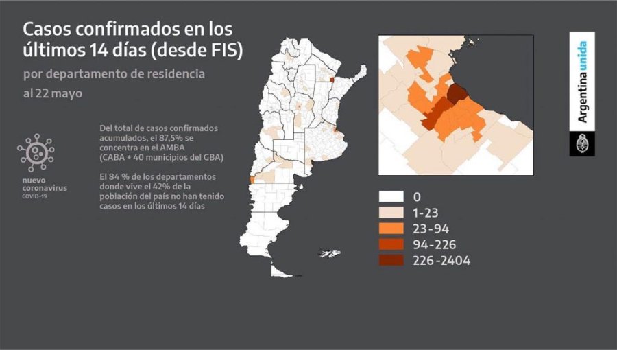 El Presidente de la Nación, Alberto Fernández, anunció esta noche la extensión del Aislamiento Social Preventivo Obligatorio en todo el territorio nacional hasta el 7 de junio en el marco de la pandemia por Covid-19. Además, se dispusieron especiales restricciones para algunos sectores de la Ciudad de Buenos Aires y parte de la provincia de Buenos Aires, que es donde se concentra la gran mayoría de los casos positivos.