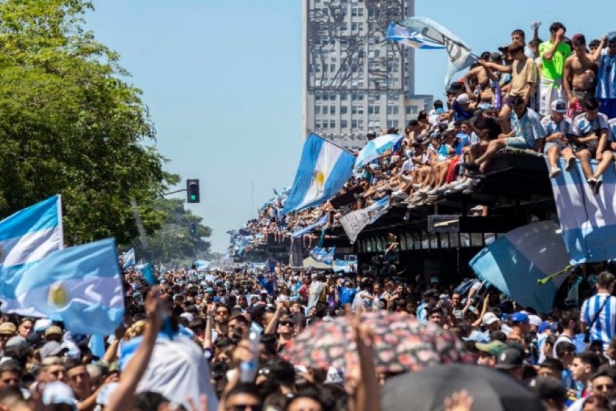 Unas 5 millones de personas desbordaron las calles de Buenos Aires. La multitud histórica esperó a los jugadores en el Obelisco y alrededores, pero las autoridades de seguridad determinaron que no estaban dadas las condiciones para seguir. Los campeones del mundo fueron subidos a helicópteros, observaron la movilización desde el cielo y regresaron a Ezeiza.