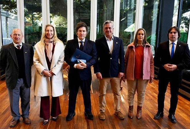 “Fue un gesto más que importante del Gobierno hacia el sector agropecuario, donde el presidente Javier Milei reiteró en varias oportunidades el carácter competitivo y productivo del campo argentino. Además, nos dijo que las retenciones están en la mira, pero por ahora no puede eliminarlas", dijo el presidente de la Sociedad Rural Argentina, luego de que la Mesa de Enlace mantuviera este martes un encuentro con el primer mandatario.