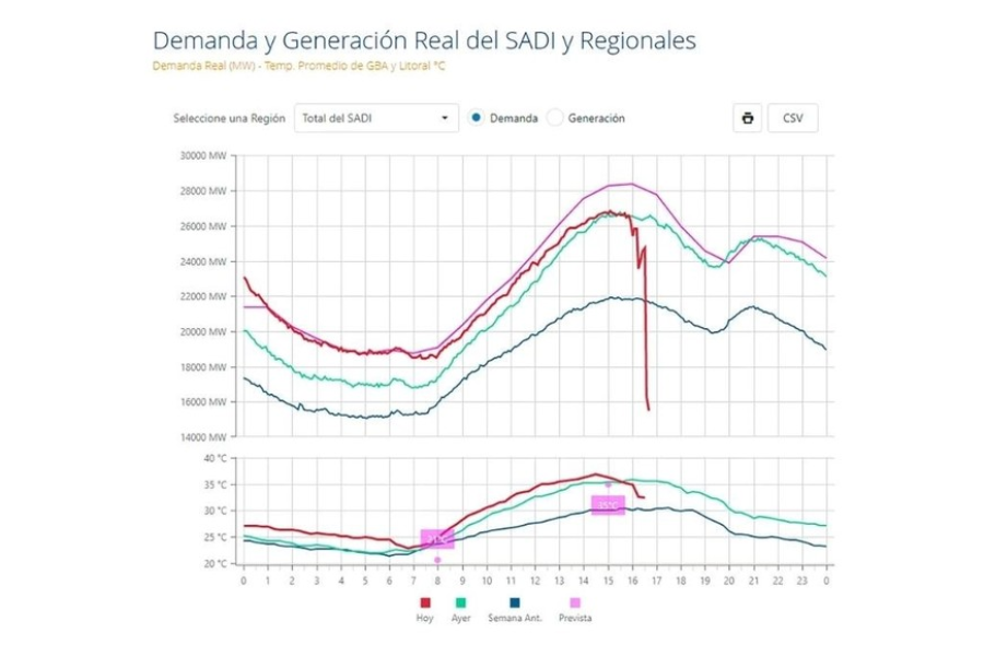 De acuerdo a la página de Cammesa, la compañía que administra el mercado eléctrico nacional, se produjo una caída abrupta de la demanda de energía a las 16.35 del miércoles.