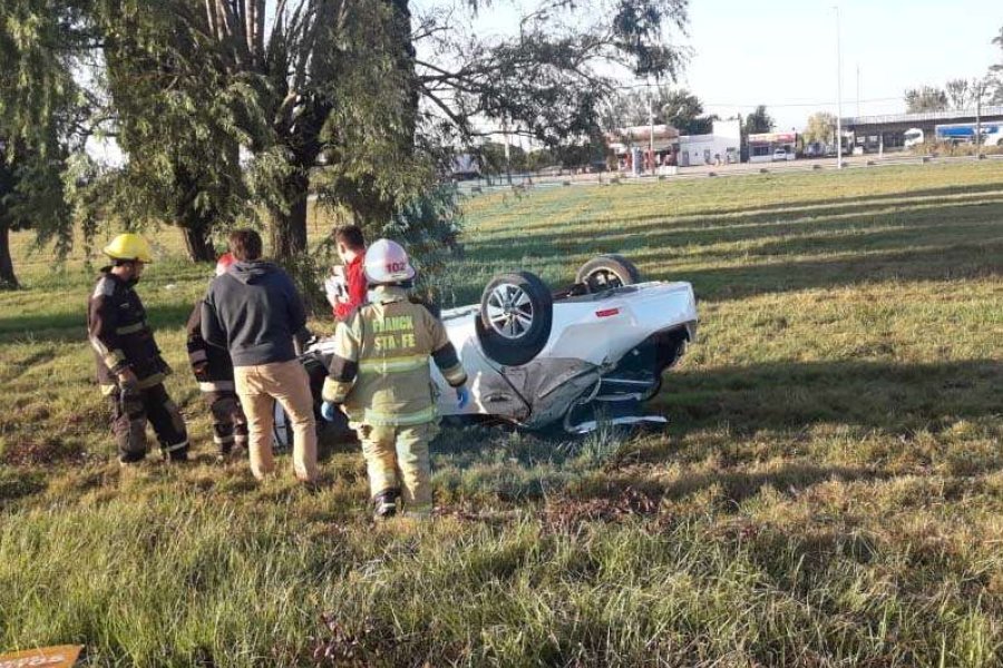 Este domingo por la mañana en el cruce de la Autovía Ruta Nacional 19 y la ruta provincial 6 se produjo el vuelco de un automóvil dentro de la rotonda que se encuentra en el lugar.