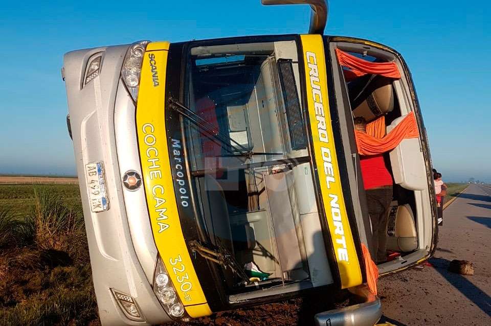 Pasadas las 07:00hs del domingo en Autovía Nº 19 a la altura del km 64.5 por causas que aún se investigan y sin intervención de terceros, un colectivo Scania de la empresa Crucero del Norte con 36 pasajeros conducido por hombre de 36 años acompañado de un ciudadano de 43 años, ambos oriundos de la ciudad de Alem en la provincia de Misiones, perdió el control del vehículo provocando su vuelco. Producto del siniestro, los pasajeros fueron trasladados al Hospital José María Cullen de la capital provincial pero ninguno de los casos revistió gravedad. En el lugar trabajaron personal policial y de seguridad Vial, Carreteras Centrales Argentinas y servicios de emergencias de toda la zona.