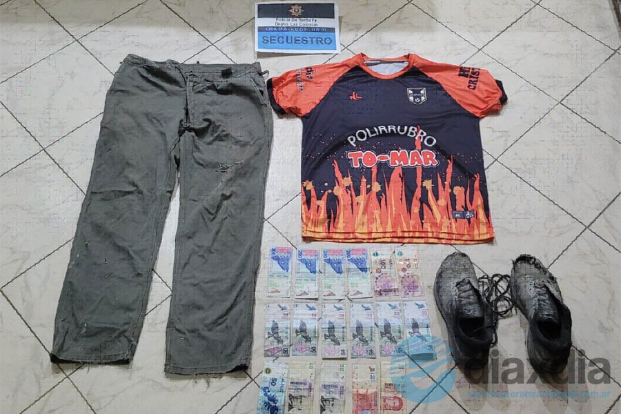 Se procede a aprehender al ladrón y secuestrar de su domicilio un pantalón marca ombú, remera mangas cortas naranja y negra, un par de zapatillas y dinero en efectivo. Horas más tarde el fiscal de turno dispuso que pase a estar en calidad de detenido.