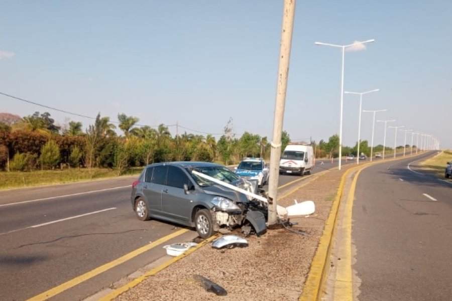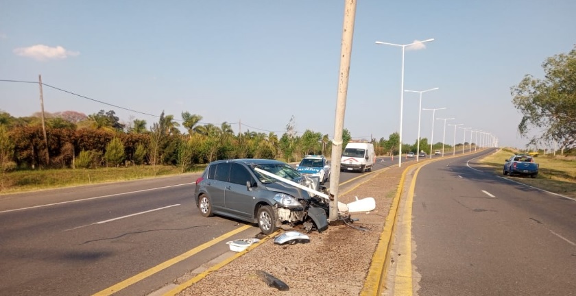 con una columna de alumbrado público ubicado en el cantero central de la Autovía 19 a la altura del Km 6.5.