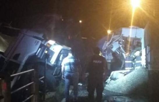 Personal de bomberos trabajó en el lugar para poder auxiliar a uno de los choferes que quedó atrapado en la cabina de su camión.