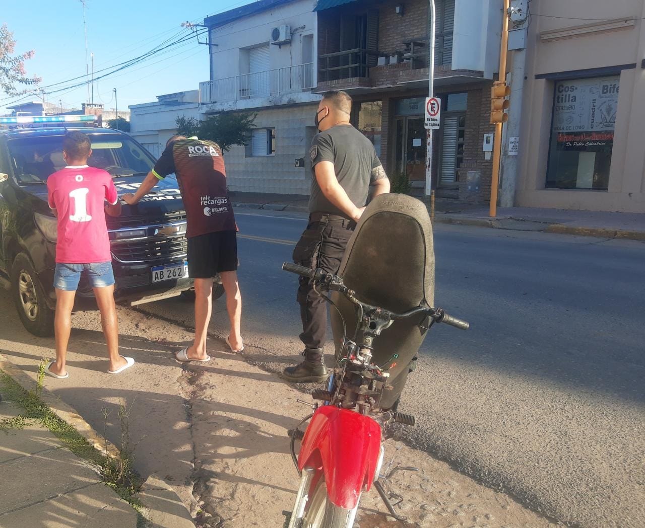 Personal Policial del Cuerpo de Guardia de Infantería URXI, en la tarde de ayer, procedió a la identificación dos personas, quienes circulaban en una motocicleta en la intersección de las calles S. de Iriondo y A. Aufranc, de esta ciudad y al realizar la verificación del rodado, pudieron observar que debajo del asiento había un elemento corto-punzante, por lo cual fue trasladado a sede policial, el conductor del rodado.