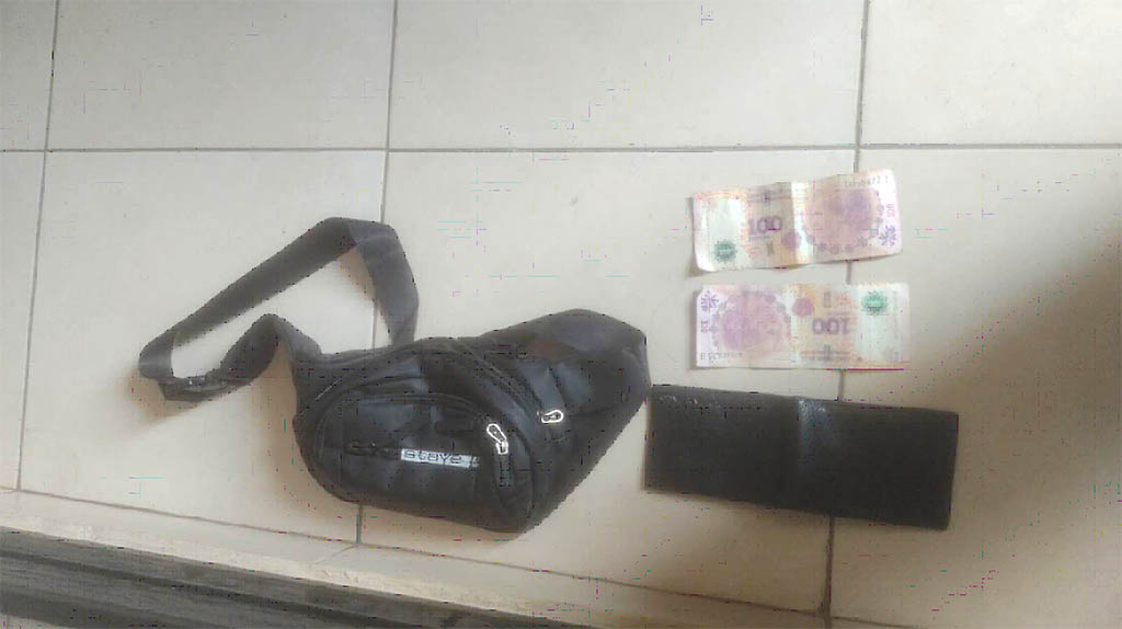 Personal de Brigada Motorizada intercepta a responsables del hecho en la Plaza San Martin y procede a recuperar la riñonera robada y una billetera color negro. Además se sustraen del lugar una bicicleta de dama color rosa y una bicicleta playera color negra que eran utilizadas por los ladrones.