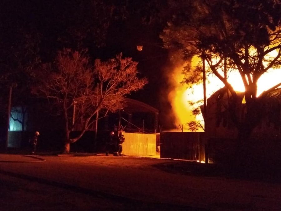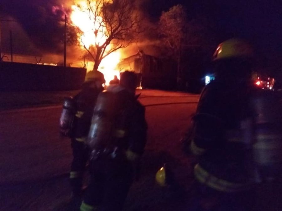Después de las 22 de anoche las sirenas de emergencias se hicieron sentir en la ciudad de Esperanza. Dos autobombas más camiones proveedores de agua junto a policías y una ambulancia se trasladaron al barrio Sur de Esperanza para atender un incendio de grandes proporciones.