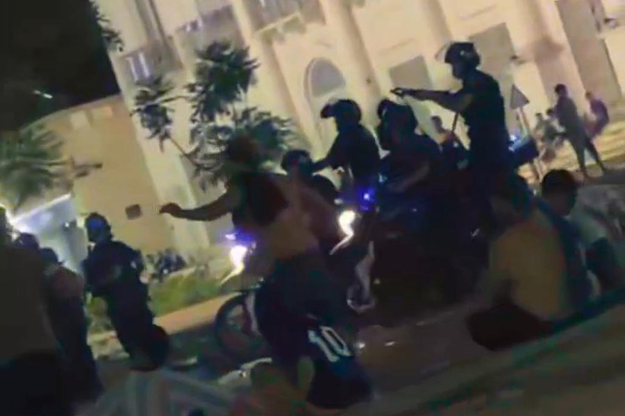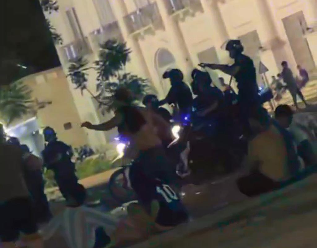 Fue cerca de las 22 del domingo cuando la policía insistió en la necesidad de desconcentrar a un pequeño grupo de vecinos y estos se resistieron y comenzaron a agredir lanzando botellas a la autoridad policial.