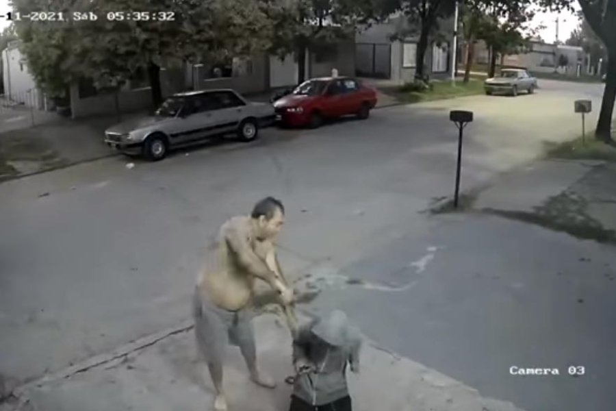Un vecino encontró a un joven robando en su auto en el amanecer del sábado. Lo corrió con un machete, lo atrapó y lo obligó a mostrar la cara delante de las cámaras de seguridad de su casa, que registraron todo lo sucedido.