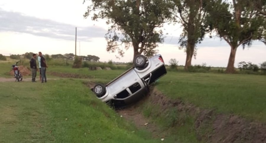 Una camioneta tipo pick up tumbó frente al cementerio de Recreo. Fue esta madrugada. No se registraron heridos.