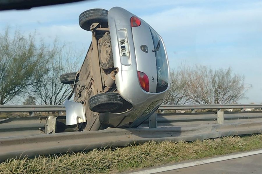 Fue este lunes después del mediodía en el sentido a Santa Fe. El Ford Ka mordió la banquina y terminó entre los guardarraíl en el cantero central de la vía rápida. El conductor oriundo de Santa Fe salió ileso.