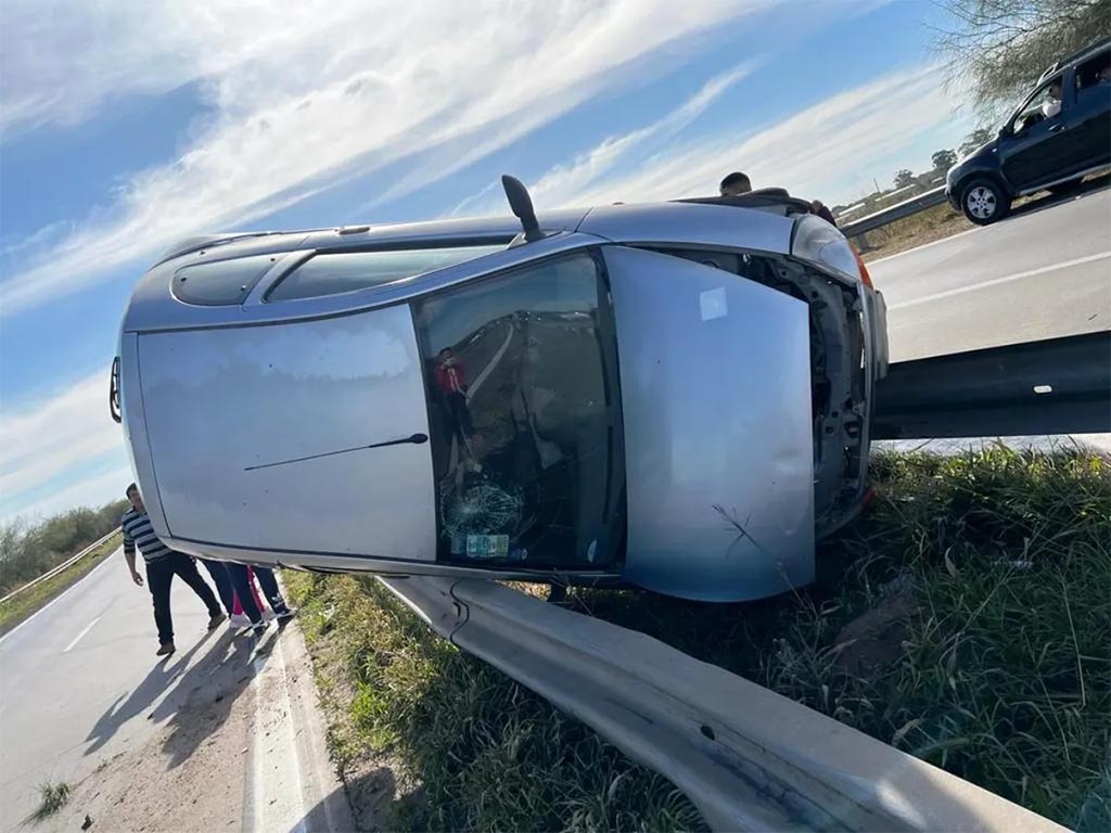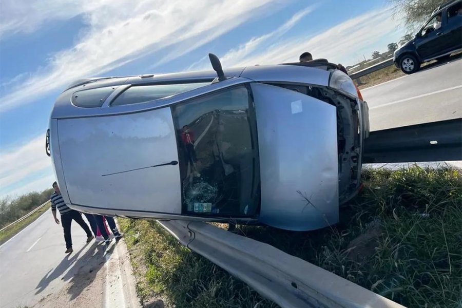 El conductor manifestó haber mordido la banquina, por lo que perdió el control del auto. El vehículo quedó volcado, apoyado sobre el paragolpes y en el cantero central de la Circunvalación Oeste.