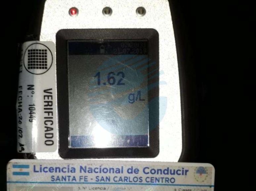 El organismo provincial informó que un conductor cuyo carnet fue gestionado en San Carlos Centro le detectaron 1,62 gramos de alcohol por litro de sangre.