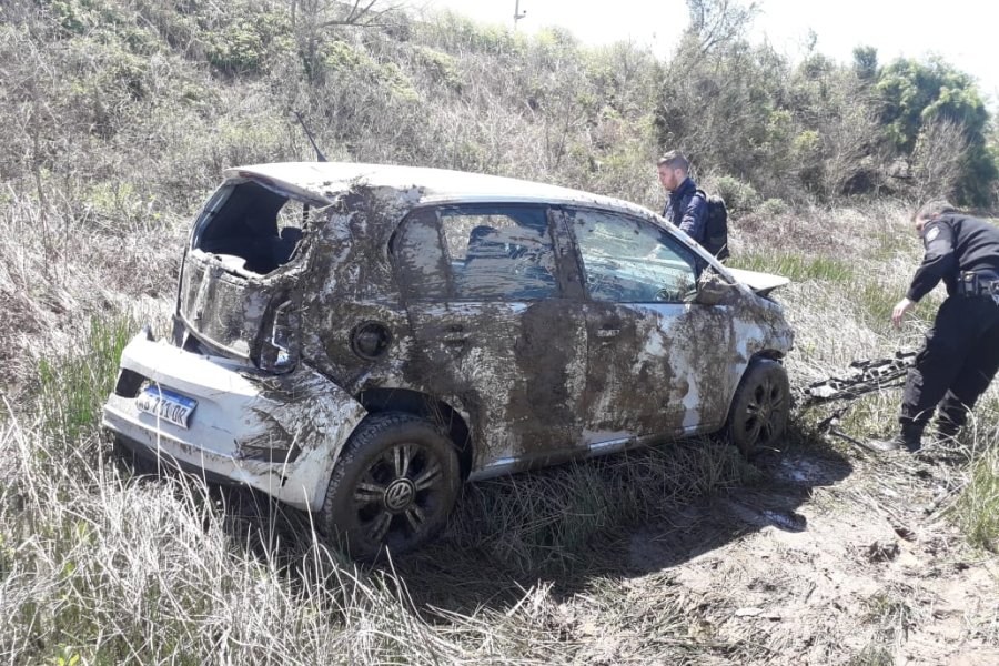 Por causas que se procuran establecer se produjo esta mañana el vuelco de un automóvil Volkswagen Up que era conducido por un joven profesional.