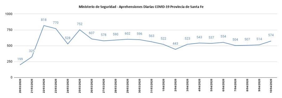 La información oficial distribuida por el titular de la cartera de seguridad provincial indica que entre las 8 del viernes y las 8 de la mañana de este sábado se registraron 303 aprehendidos en la provincia de Santa Fe y de ese total 10 fueron detenidos en Las Colonias por no respetar el aislamiento preventivo.