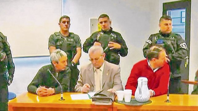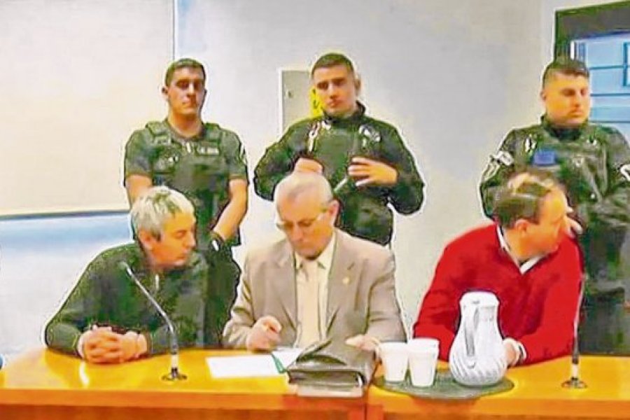 (En la fotografía, el ex jefe de la Policía Federal de Santa Fe, Mariano Valdes, junto a su segundo, Higino Bellagio, mediados por su abogado, durante la audiencia imputativa)