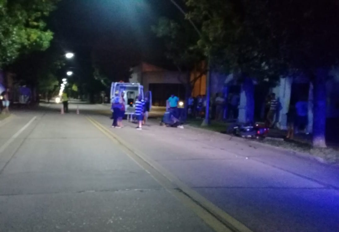 El siniestro ocurrió sobre la calle San Martín al 1800 de esa ciudad, donde por causas que son motivo de investigación, también tuvo participación un joven de 18 años, con domicilio en ese medio, quien circulaba en una motocicleta Yamaha de 150 c.c.