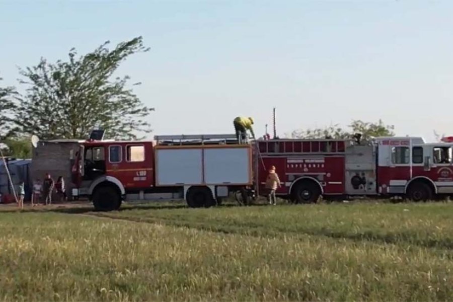 Después de las 17:30 de este martes dos unidades de Bomberos Voluntarios fueron convocadas al asentamiento de 9 de Julio y Jacob por el incendio de una precaria vivienda.