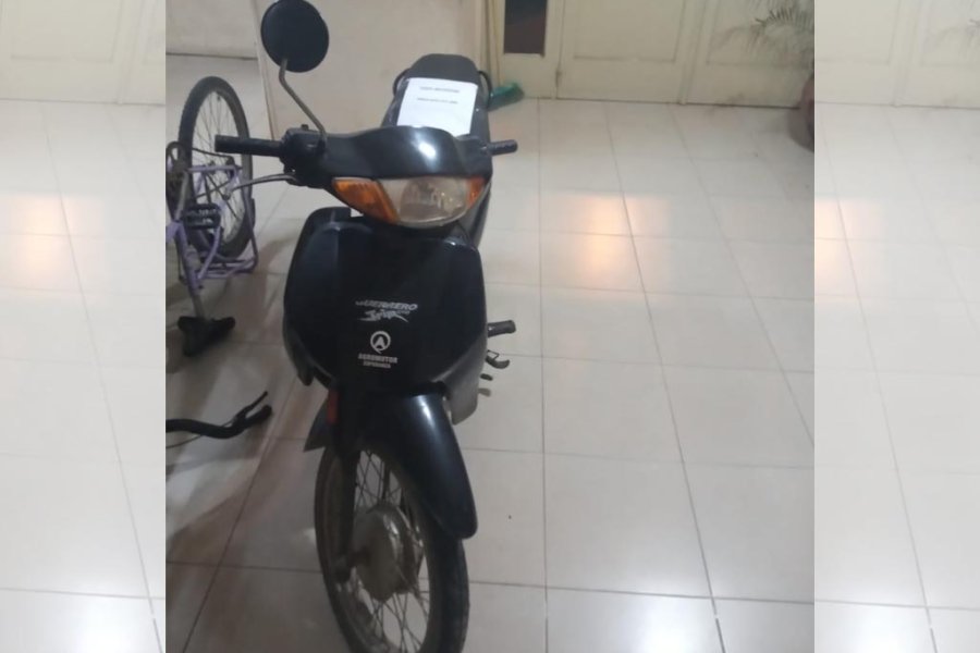 Se trata de una moto Guerrero Trip Negra que se encontraba escondida entre unos yuyales de un campo en Terragni y Alberdi y había sido denunciada como robada el sábado pasado.