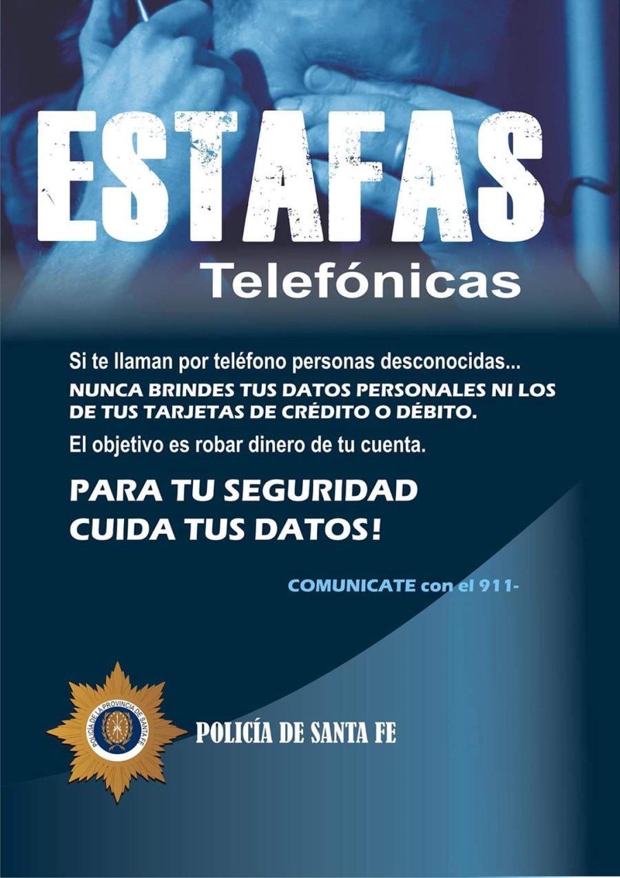 Con el fin de prevenir delitos de Estafas en sus diferentes modalidades, que por lo general se dan a través de llamados telefónicos donde el interlocutor mediante diferentes presentaciones y/o conversaciones intentan establecer si las personas poseen dinero u objetos de valor en sus domicilios, como así también solicitan datos a fin de realizar operaciones bancarias.