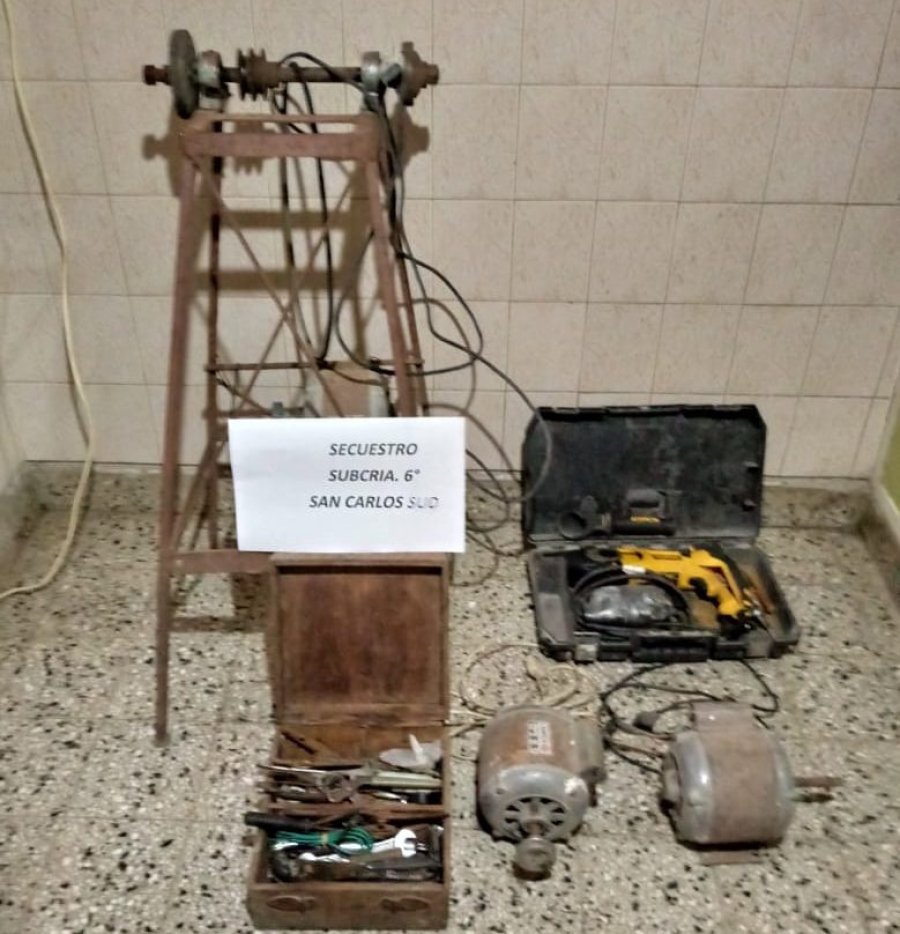 Atento a la denuncia radicada por un hombre de 63 años, respecto de un robo cometido en una vivienda rural, el personal policial de la Subcomisaría Sexta URXI, de manera inmediata y con los recaudos legales pertinentes, registraron un domicilio en la localidad de San Carlos Sud, en donde pudieron recuperar las pertenencias denunciadas; secuestrándose dos motores, un rotomartillo, una máquina de afilar eléctrica y varias herramientas de mano.