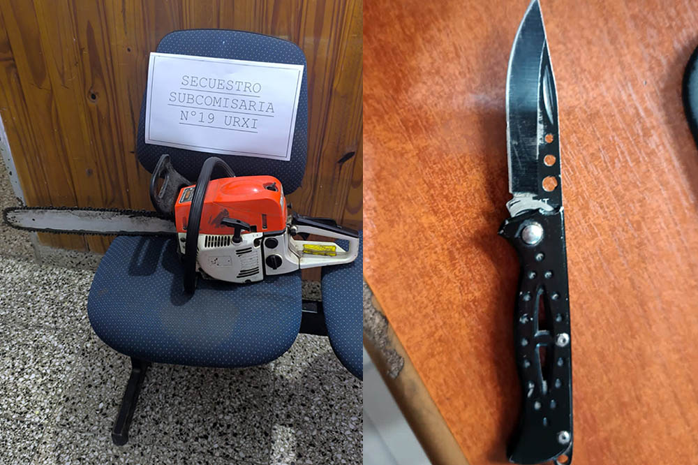 En otro sector de la ciudad tras un alerta al 911 un vecino, domiciliado en el asentamiento del sector Oeste, fue encontrado escondido en el interior de una vivienda abandonada. La policía le realizó una requisa palparea y encontraron entre sus prendas un arma blanca. Fue trasladado a sede policial.