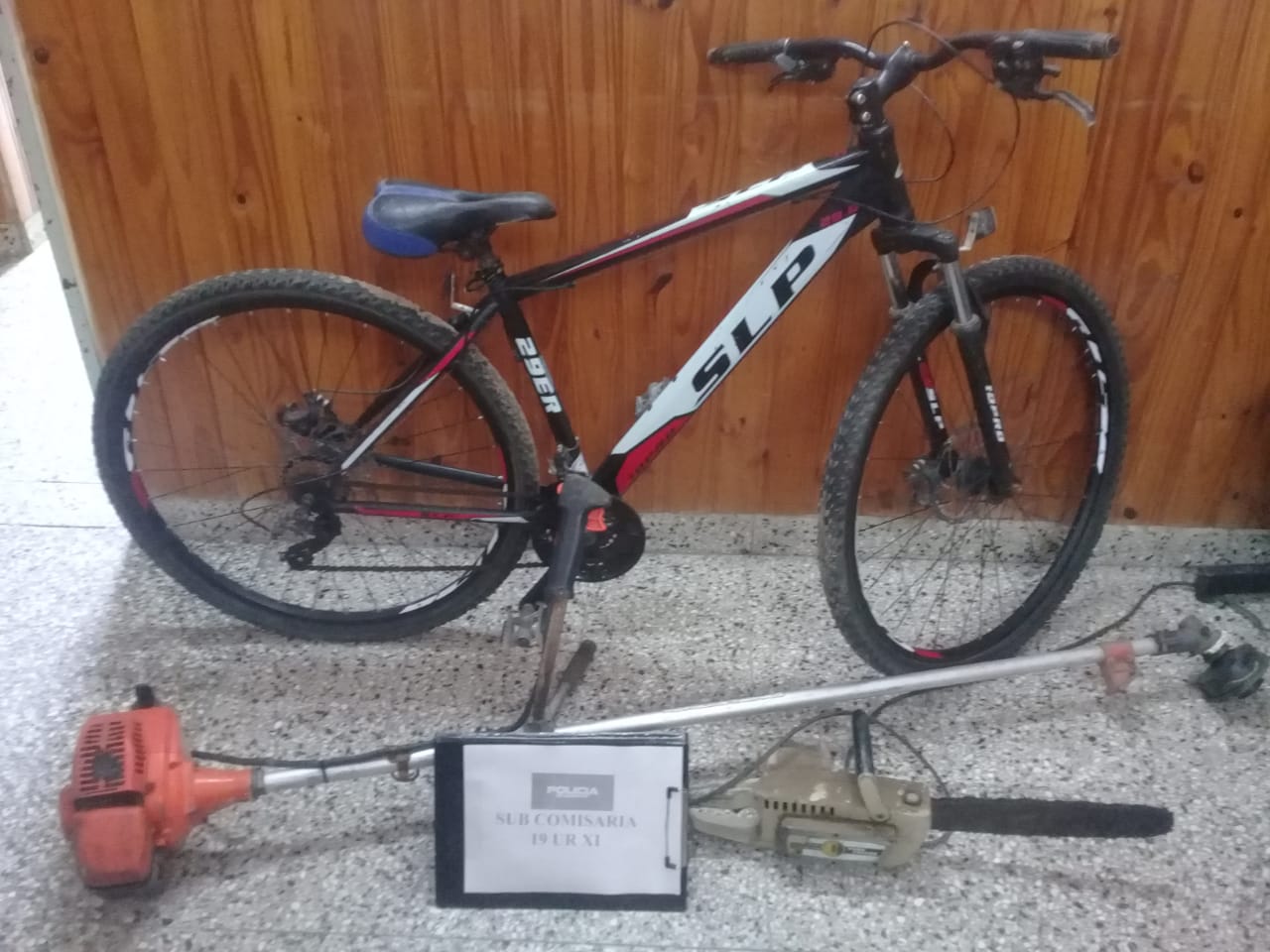 Personal policial de la Subcomisaría 19° URXI, procedió al recupero de una bicicleta SLP, una motoguadaña y una motosierra, elementos que habían sido sustraídos el sábado pasado, cerca de la medianoche.