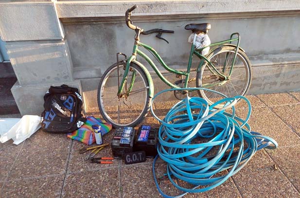 La policía llegó a un predio tras un alerta al 911, encontró baterías, cables y una mochila. Luego personal de la empresa de servicios realizó una denuncia y se pudo comprobar que esos eran los elementos robados.