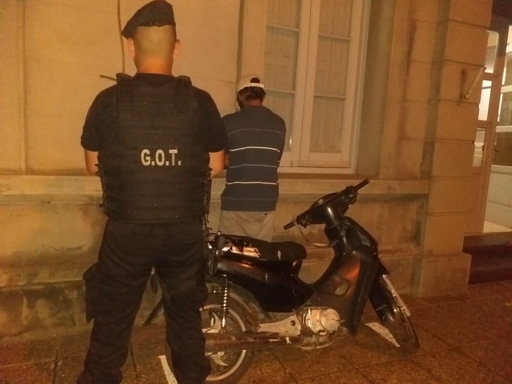 Cerca de las 21 horas de ayer, efectivos policiales del Grupo de Operaciones Táctica (GOT) URXI, en circunstancias de encontrarse realizando patrullajes preventivos por las calles Simón de Iriondo y Bosch de este medio, procedieron a la identificación de dicho vecino, el cual circulaba en una motocicleta Smash y al consultar al Sistema respectivo