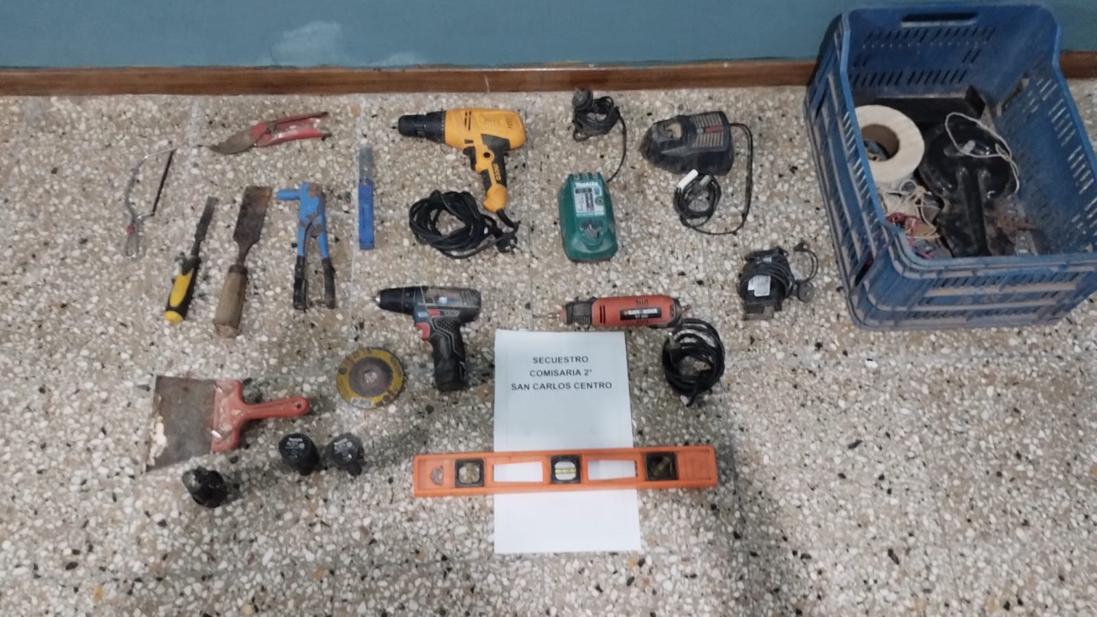 Inmediatamente, se abocaron a realizar tareas investigativas, logrando el recupero de un cajón de plástico conteniendo cinco taladros de distintas marcas y varias herramientas de mano, como así también a la aprehensión del involucrado.