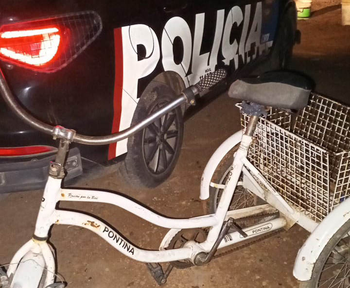 Durante la tarde de ayer, Personal de Comando Radioeléctrico de esta Unidad Regional XI encontrándose de recorrida en inmediaciones de calles Moreno y 25 de Mayo, identifico a un joven trasladándose en una tricicleta similar a la denunciada como sustraída días pasados.