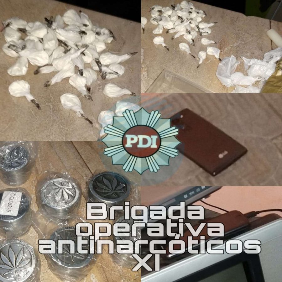 Este sábado, personal policial de la Brigada Operativa Antinarcóticos “XI” de la Policía de Investigaciones (P.D.I) llevó a cabo un operativo en el que detuvieron a dos personas y secuestraron material estupefaciente.