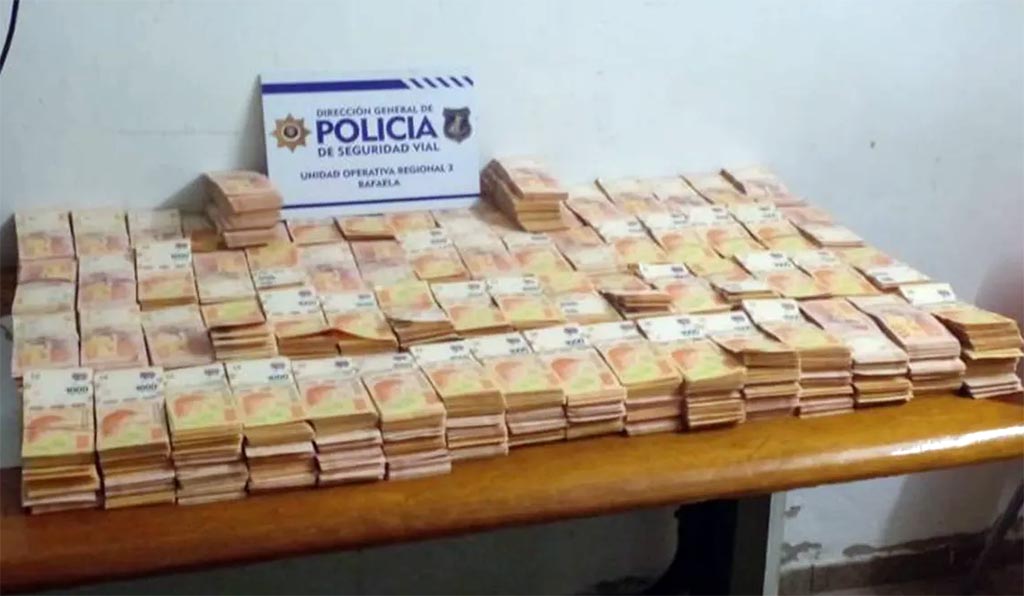 El rodado era conducido por Alan G., quien circulaba junto a Franco L., ambos oriundos de la provincia de Tucumán, y al registrarse el baúl se ubicaron dos cajas que contenían 27.760.000 pesos en efectivo.